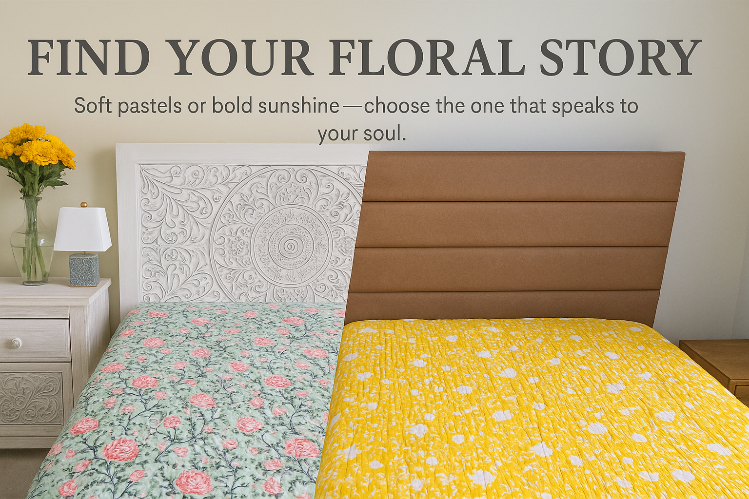 Immerse yourself in the timeless charm of The Garden Bloom Collection by Motifz — a curated line of reversible, hand-block printed cotton quilts designed to bring joy, elegance, and heritage to your home.